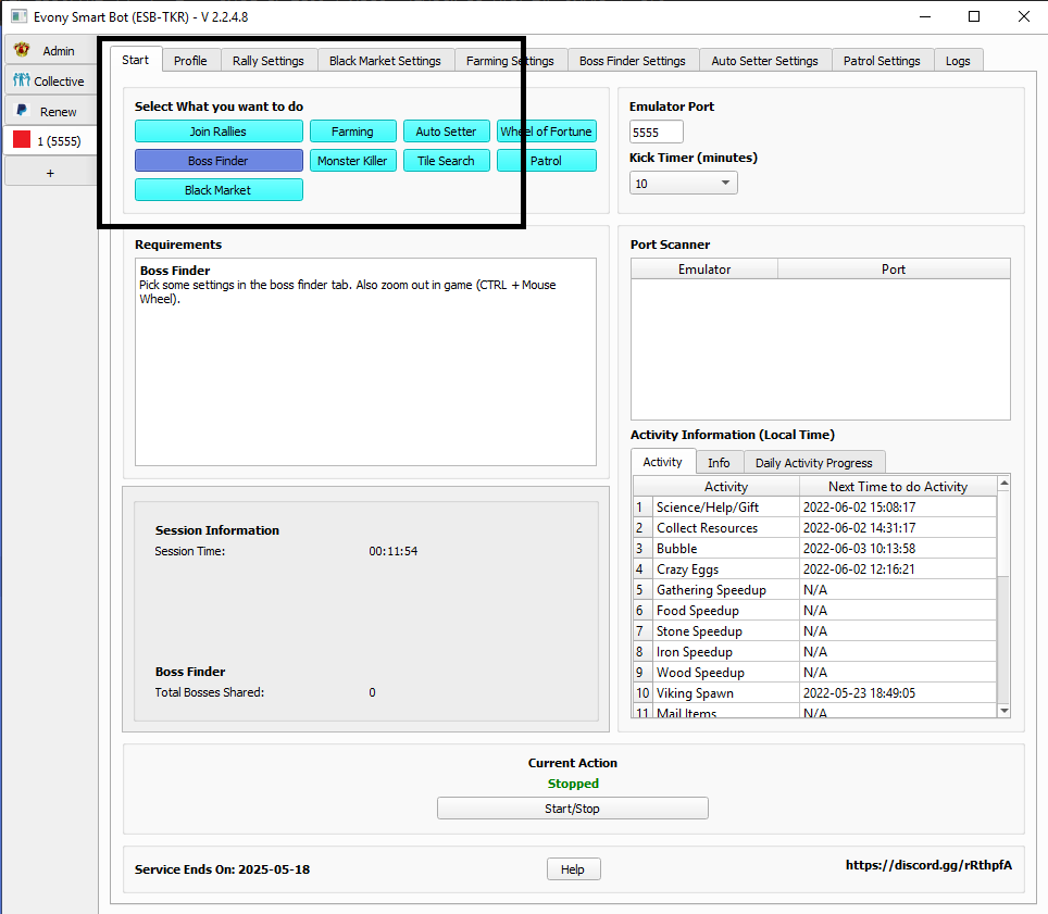 Boss Finder là chế độ chuyên dụng để quét và tìm kiếm tọa độ boss/quái vật trên bản đồ. Chế độ này thường kết hợp với Auto Setter để tự động đặt rally hoặc chia sẻ tọa độ cho liên minh/nhóm chung (Collective).