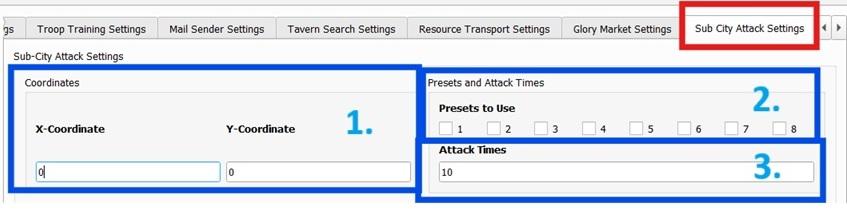 2. Cài đặt Tấn công (Sub City Attack Settings): Bạn cần chuyển sang tab Sub City Attack Settings để điều chỉnh các thông số sau: