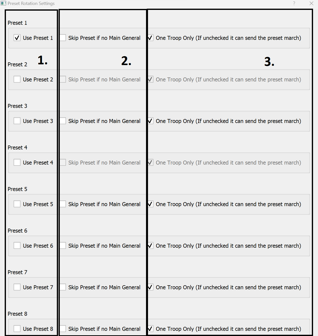 • Skip Preset if no Main General (Bỏ qua Preset nếu không có Tướng chính):
